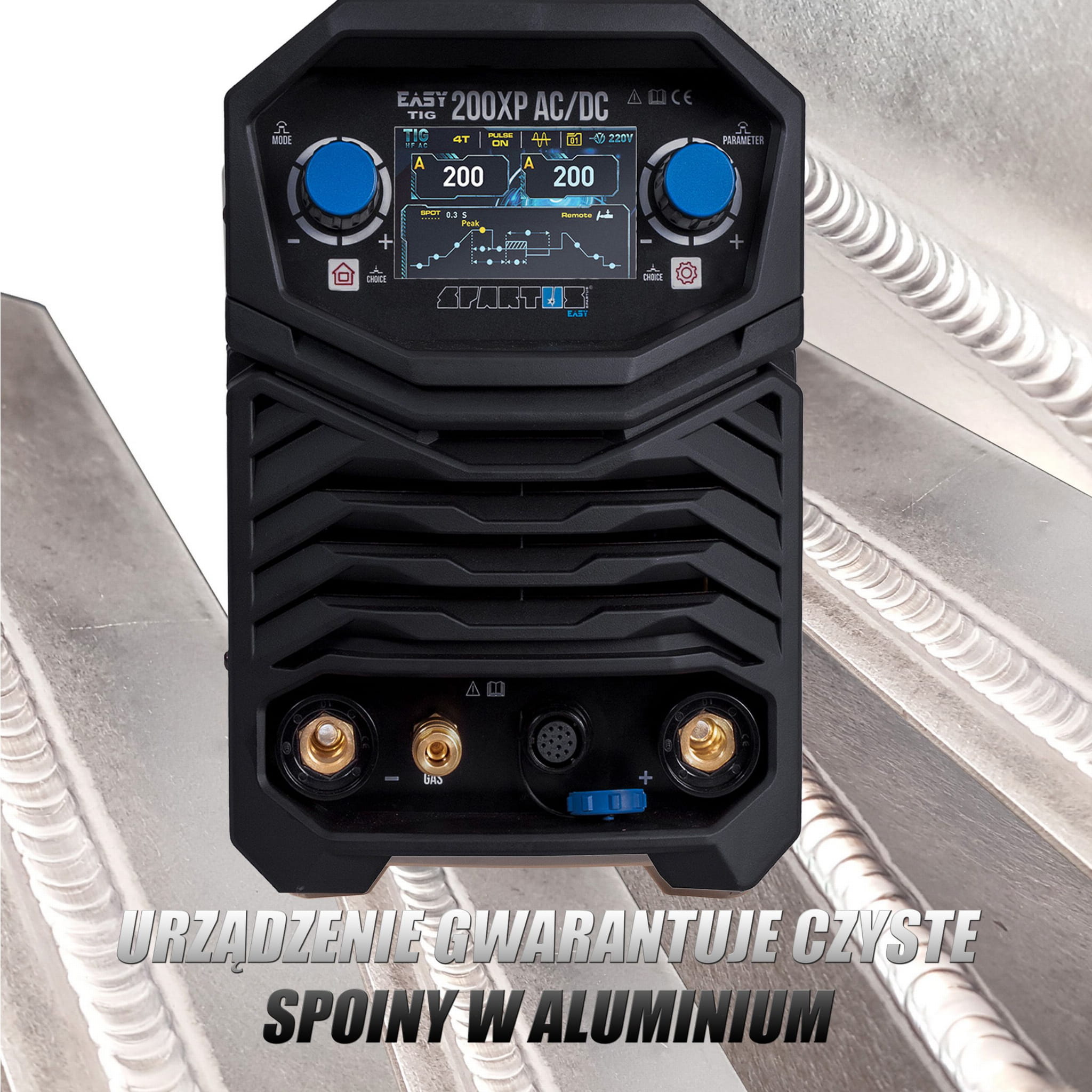SPARTUS TIG 200XP AC DC to sterowana cyfrowo spawarka inwertorowa, skonstruowana w oparciu o tranzystory IGBT. Umożliwia spawanie metodami TIG AC 200A - TIG DC 200A oraz MMA AC/DC natężeniem prądu 200A. Zasilana jest z sieci jednofazowej 230V. Funkcja puls pozwala na łączenie bardzo cienkich materiałów w aluminium, stali, stali nierdzewnej oraz wielu innych materiałów. Spawarka posiada intuicyjny panel sterowania który zapewnia szybkie poruszanie się po funkcjach.
